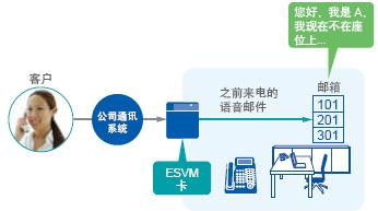可选的ESVM卡确保您享受到高效容易的语音信息带来的快乐,不需要再安装单独的语音邮件系统了。定制您的邮箱当您不能接电话时可播放您录制的问候语。来电者把他们的信息直接发到您的个人邮箱里,允许您接收个人信息。不用再写邮件给您。